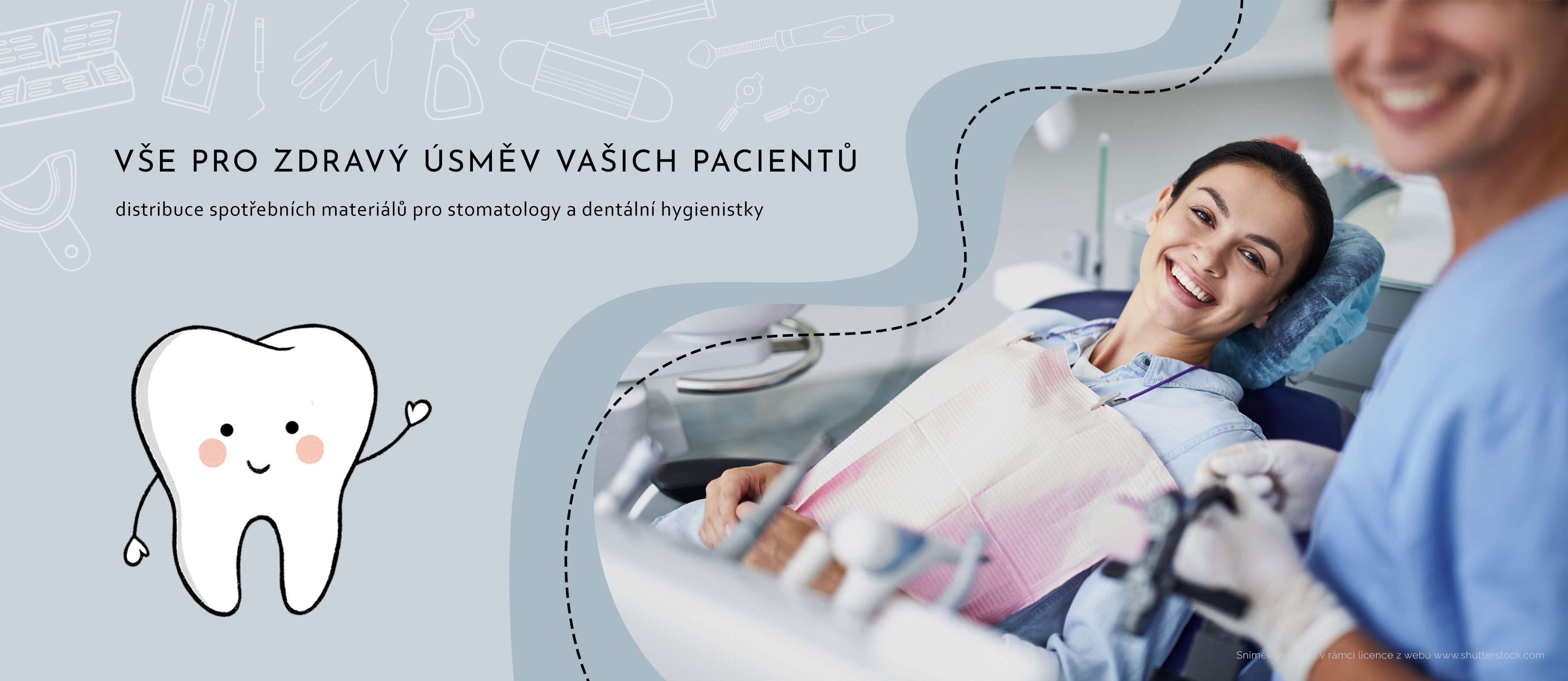 Vítejte na stránkách naší společnosti, která se specializuje na distribuci spotřebních materiálů a zboží pro stomatology a dentální hygienistky.